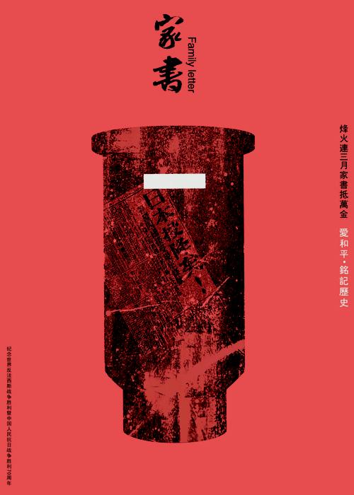 袁朝辉副教授的获奖作品创意源于出自唐代诗人杜甫的诗句“烽火连三月,家书抵万金”,将子弹壳置换成邮筒,图形语言简单有力,视觉肌理促使一种深沉的情感回忆,告诫人们和平来之不易,爱和平勿忘历史!