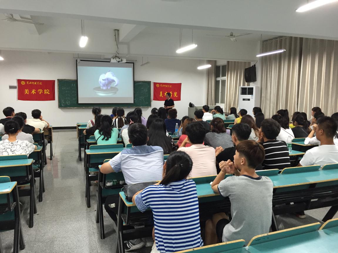 9月8日晚上和9月9日上午,公司邀请武汉AAA数字艺术教育企业工程师李钧、汪冲、陈俊杰一行,在美术楼A202教室,举行了2016级设计专业新生入学专业教育的第三和第四场讲座活动。讲座由设计系宋国彬主任主持。