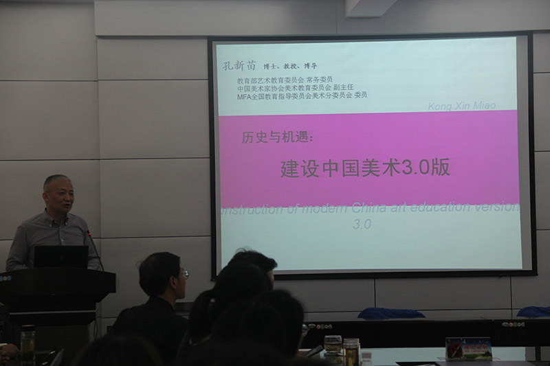 孔新苗教授的《建设中国美术教育3.0版本》围绕“由历史看现实”“身边美术人变化”“新的文化传播媒介怎么做”等几个部分展开,强调了由1.0版本的美术教育到3.0版本的美术教育的过程的发展及时代性差异性。