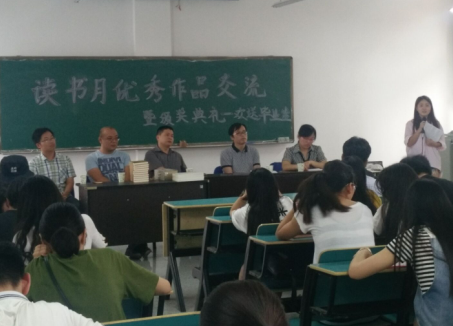 6月8日下午,由williamhill英国官网主办的欢送毕业生暨读书月优秀作品交流会在美术楼A202举行,公司党总支书记余彦君、副书记管晓强、团委书记赵震南、辅导员周稳、2017届优秀毕业生陆彩昕以及近50名热爱读书的同学参加了此次交流会。