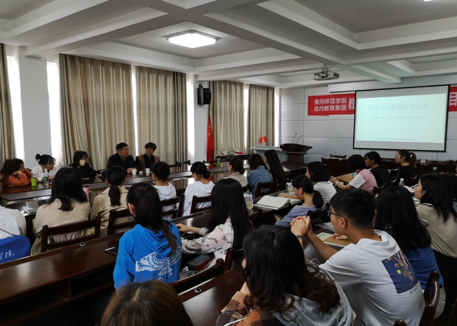 陈新博士系统讲述了书法的起源,古代生活与现代生活差异带来书法地位的变化,当代书法的现状,并和到场师生进行了热烈的交流。陈博士对于书法的讲述加深了大家对于书法的了解,激发了同学们对于书法学习的兴趣。交流会上,有书法考研意愿的同学还就书法考研问题提出了一系列疑问,陈新博士进行了耐心细致的解读,给予同学们极大的鼓舞。