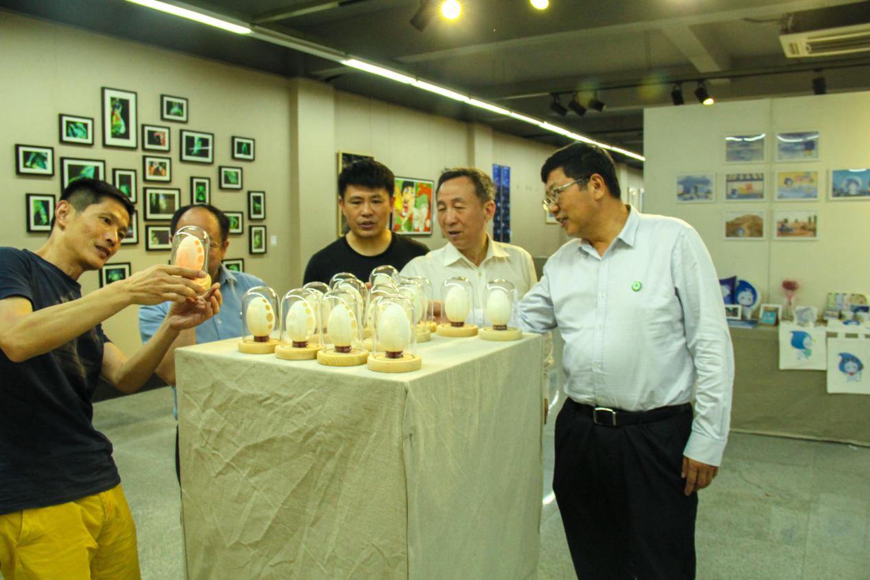 5月27日下午,湖北大学党委书记尚钢,公司党委书记王立兵,公司党委副书记、纪委书记李金奇一行到美术楼一楼展厅参观“williamhill英国官网2019届毕业生作品展”。