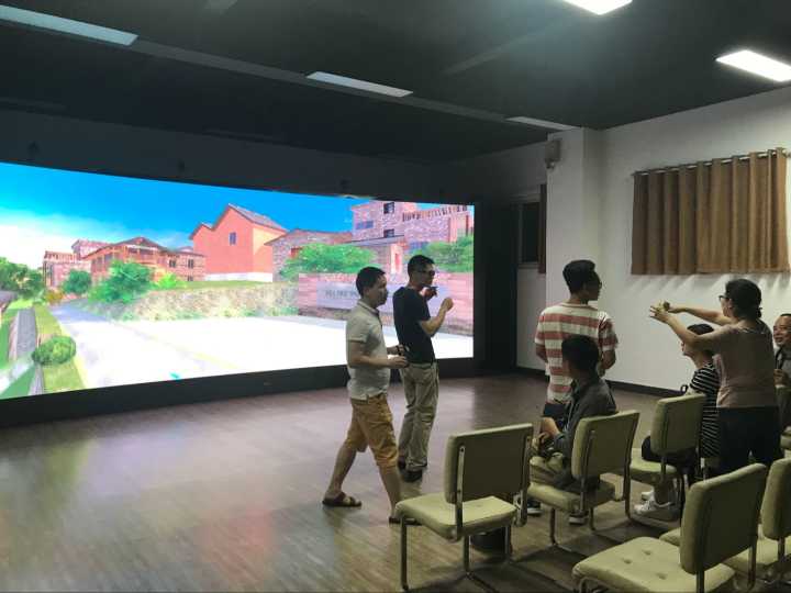 下午,袁朝辉一行参观了武昌理工公司人工智能公司的VR技术实验室,了解了全彩led显示大屏、书包式VR显示设备等,上海曼恒数字技术有限公司武汉分公司技术人员以传统村落VR系统为例进行了虚拟漫游体验展示。随后,袁朝辉一行来到武汉软件工程职业公司艺术与传媒公司,在程丽琴经理的带领下,参观了该院影视特效实训室、影视动画与游戏VR交互实训室、数字影像实训室、音频制作实训室、数字绘画实训室、图文装订实训室、摄影摄像实训室、环艺雕刻实训室等,并就实验室仪器设备购置、管理人员配置、实验室运行与管理等方面进行了交流。