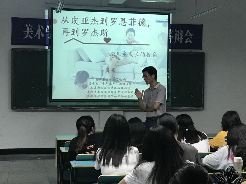 6月25日晚上7:00整,团中央“青年之声”心理专家肖安应公司邀请,在williamhill英国官网A202开战了题为《从皮亚杰到罗恩菲德——透过美术教育看儿童心理成长》的专题讲座。公司副经理方圣德教授主持,美术学教师教育实验班三个年级70余员工聆听了此次讲座。