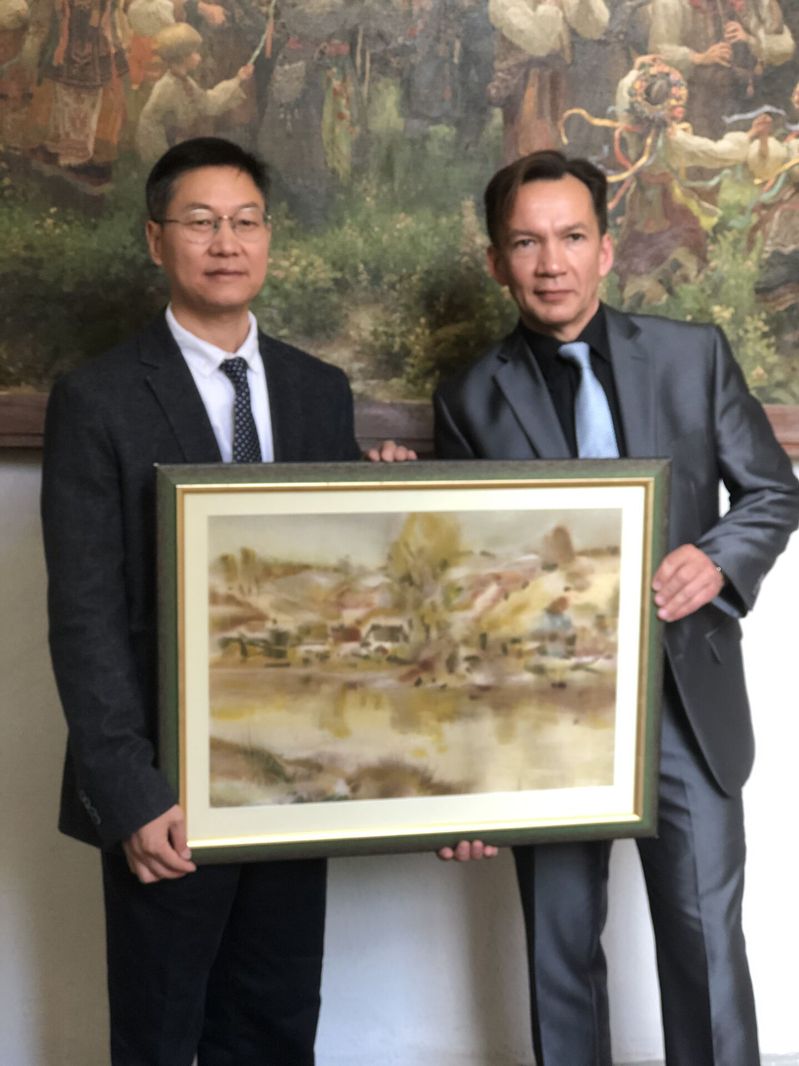 哈尔科夫国立艺术公司董事长康斯坦金·萨夫千科、副董事长尤里·连理多维其、副董事长阿列柯谢·尤里列维其、设计系主任弗拉斯洛拉夫·安多里耶维奇热情的接待了王立兵一行,并对王立兵一行的到来表示热烈的欢迎。