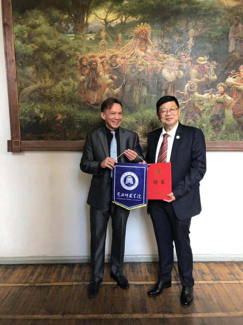 康斯坦金·萨夫千科为王立兵书记和胡绍宗分别颁发了特聘教授的证书,王立兵向康斯坦金·萨夫千科颁发了特聘教授的证书,双方互换礼物。