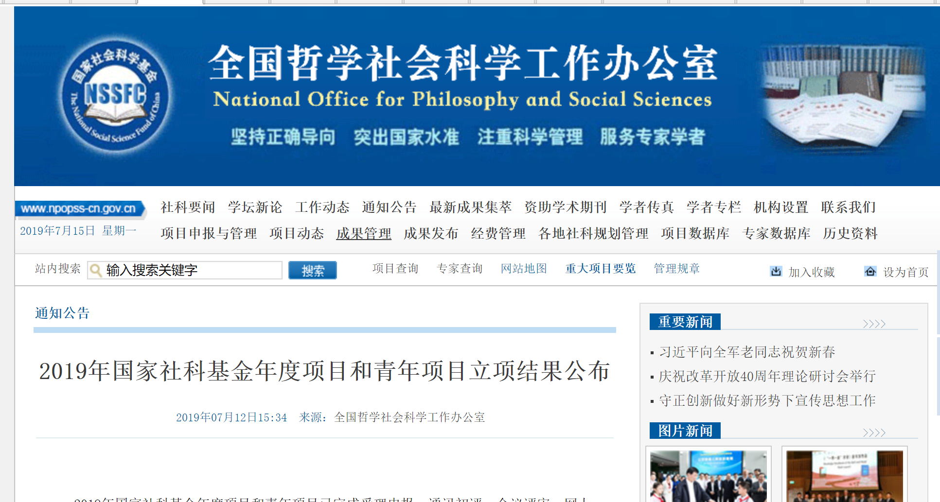 7月12日,全国哲学社会科学规划办公室公布的2019年国家社科基金年度项目立项通知,公司胡绍宗教授申报的《新中国70年农民画文化主体性及现实价值研究》(19BSH098)获得面上项目立项,所属学科为社会学,全国获批社会学项目187项,公司能以艺术现象为研究主体占得一席,是公司近年来科研管理机制不断完善,教师科研水平不断攀升的实力显现。