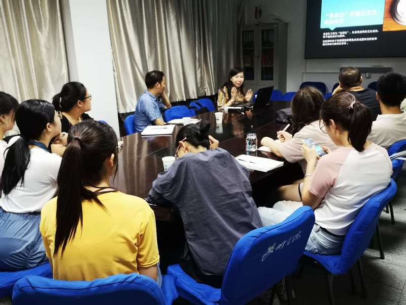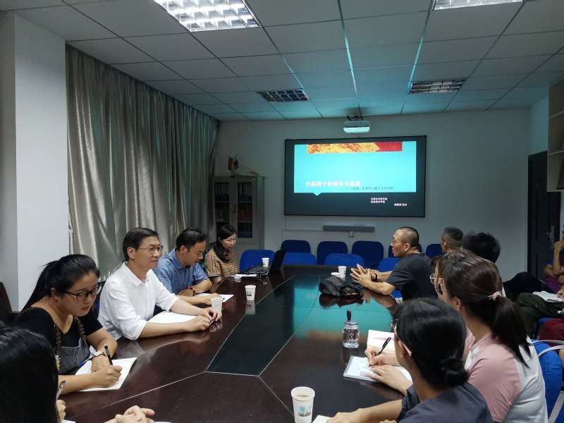 张博士从物理学的角度分析了颜料颗粒大小呈现出来的色彩变化,阐述了植物颜料、矿物颜料以及生物颜料在中国绘画与日本绘画中的运用与价值,并对今后中国重彩绘画的发展表达了自己的看法。讲座中,蒋文兴、黎际文等老师与张博士在色彩研究与色彩教学方面做了深入的沟通。