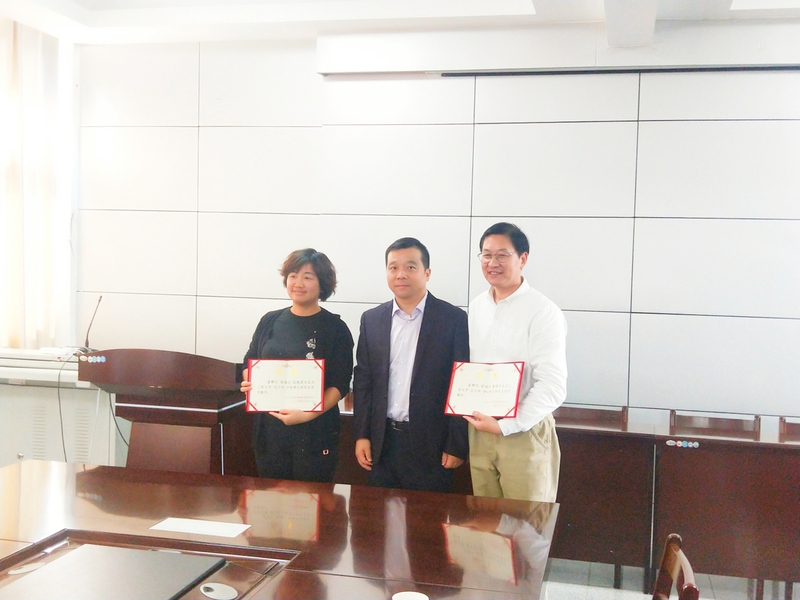 胡绍宗代表公司介绍了公司在学科和研究生工作具体措施与成绩,并对公司与武汉工程大学艺术设计公司联合培养研究生充满了信心。邱教授充分肯定了公司在学科、科研和研究生工作上的成绩,特别是在大别山农耕文化的保护与传承上尤为突出,他代表武汉工程大学艺术设计公司为胡绍宗教授和胡晓洁副教授颁发了硕士生导师的聘任证书,他们分别指导2019级三名和两名硕士研究生。