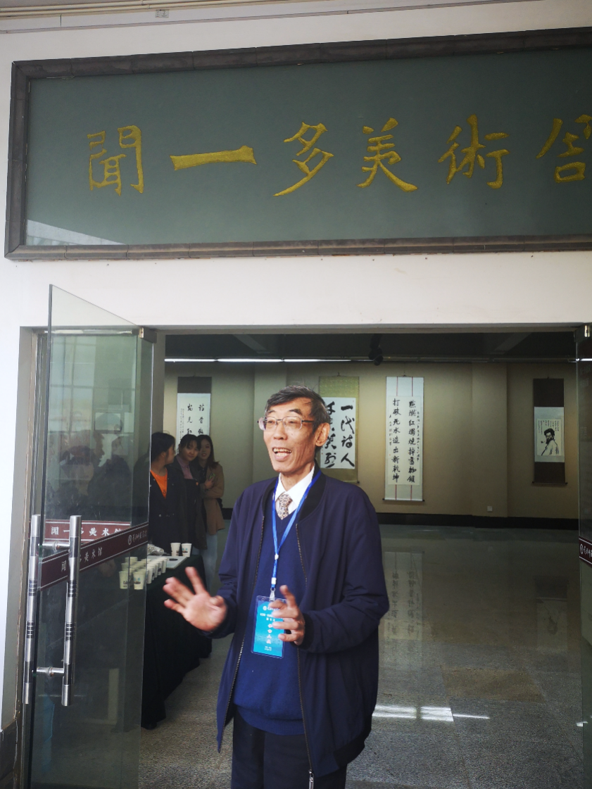 在williamhill英国官网北侧草坪闻一多先生雕像前,闻黎明先生敬献花篮,鞠躬缅怀,与到场领导和嘉宾合影留念。在闻一多美术馆,闻黎明先生及家人饶有趣味地观看了参展作品,并在williamhill英国官网蔡增杰老师创作的闻一多先生铜像前留影。此次作品展共展出全国征集的获奖作品115件,作品以丰富的形式讴歌了闻一多先生作为诗人、学者、民主斗士的伟大人格和爱国精神。展览还展出了中国民盟书画家刘红选先生绘制的民盟先贤水墨肖像作品三十余幅。