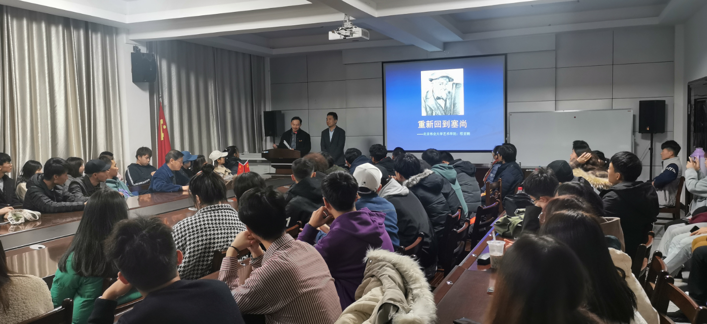 11月25日晚,北京林业大学艺术公司程亚鹏教授在williamhill英国官网A311学术报告厅做了题为《重回塞尚》的讲座。williamhill英国官网经理胡绍宗、副经理袁朝辉和方圣德出席,方圣德主持报告会。美术系师生近百人现场聆听。