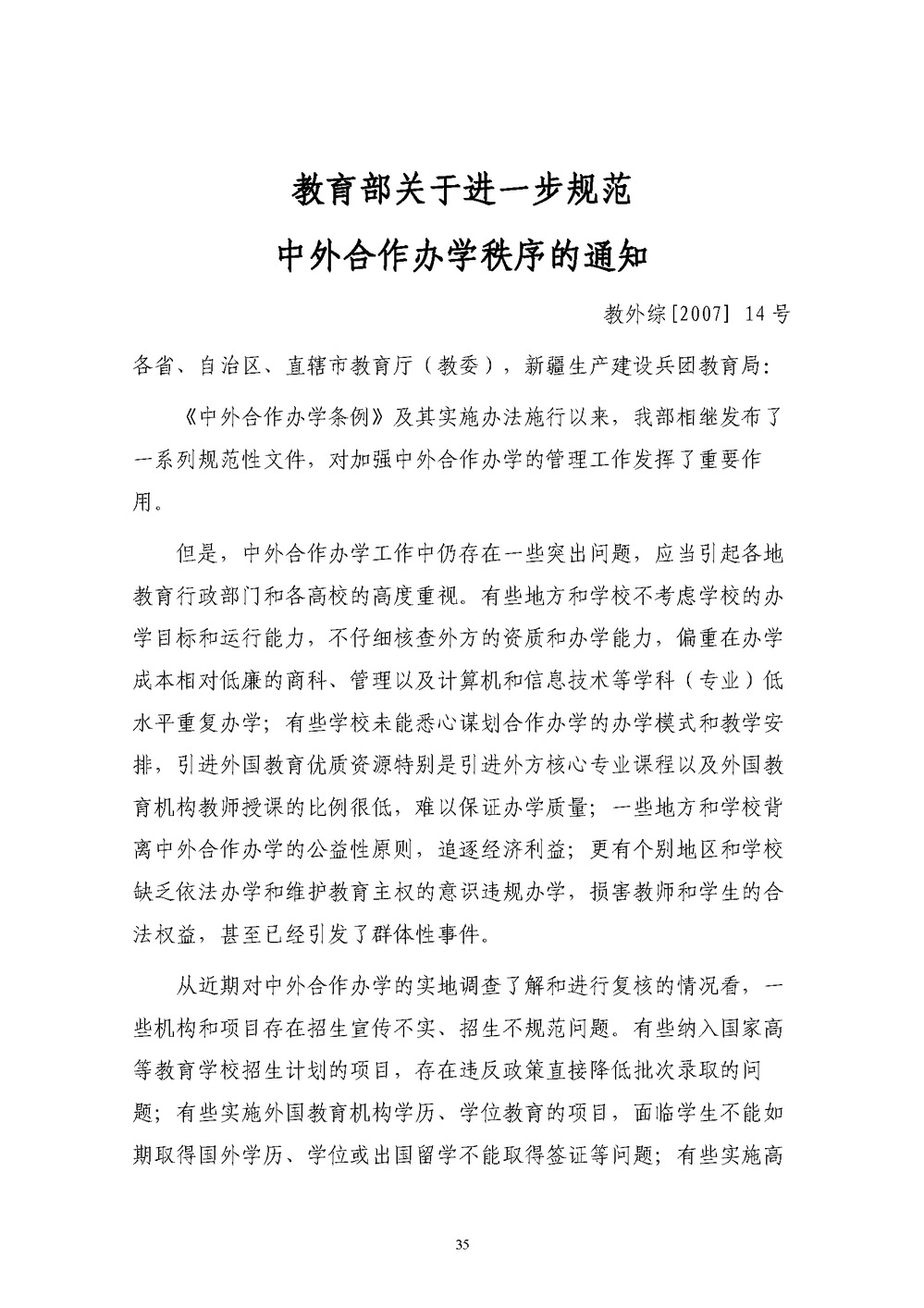 教育部关于进一步规范中外合作办学秩序的通知(教外综[2007] 14 号 ).pdf