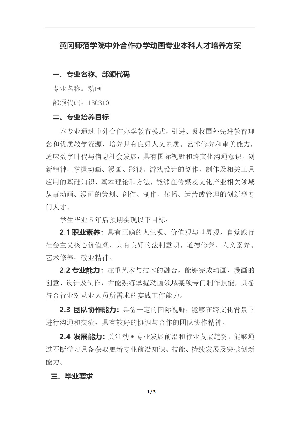 williamhill英国官网中外合作办学动画专业本科人才培养方案