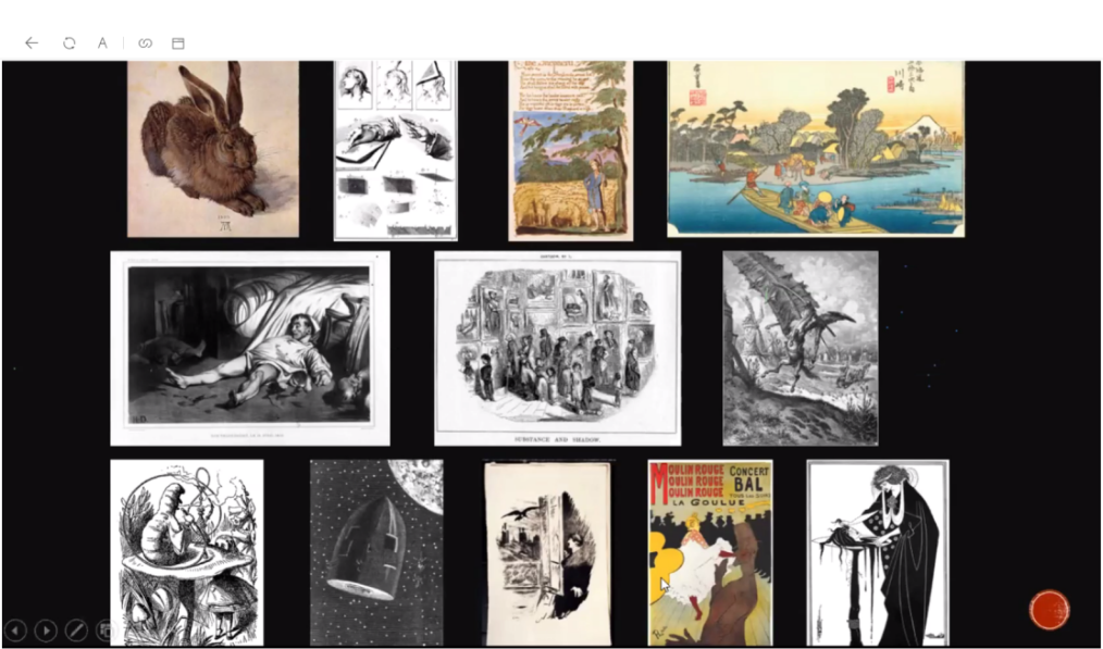 开课仪式后,张源之老师从分析艺术家作品入手,对插画的内涵、概念、分类、插画起源以及插画的传播方式等内容进行讲解与分析。张老师用温柔风趣且不乏洞察力的语言,向同学们传达了她对于艺术创作和人生的见解,以及如何进行专业学习同时和有效拓展自己的视野与想象力。在课间休息时间,同学们提出了一些自己的见解和疑惑,张源之老师一一进行了解答。