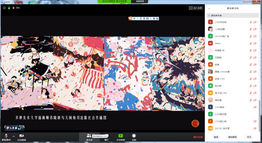 2020年4月20日上午,公司中外合作办学项目动画专业《CG插画》课程在ZOOM网络平台举行了开课仪式。日本东京艺术大学张源之老师、副经理袁朝辉教授、动画系教师及2017(中外)动画53名同学参加了此次活动。活动由经理助理邵照坡副教授主持。