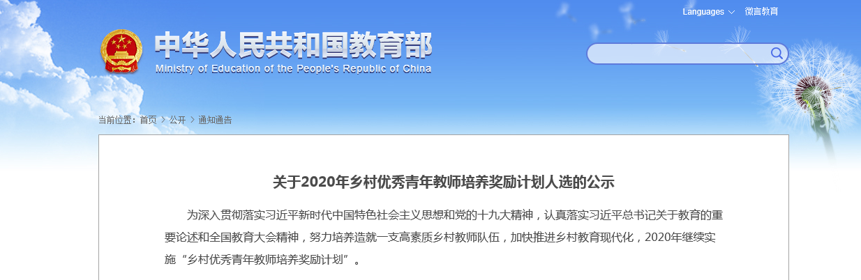 近日,教育部对2020年乡村优秀青年教师培养奖励计划人选名单予以公示,全国311名教师入选,湖北9名教师榜上有名,其中上榜人员中就有公司2010届毕业生郑林。