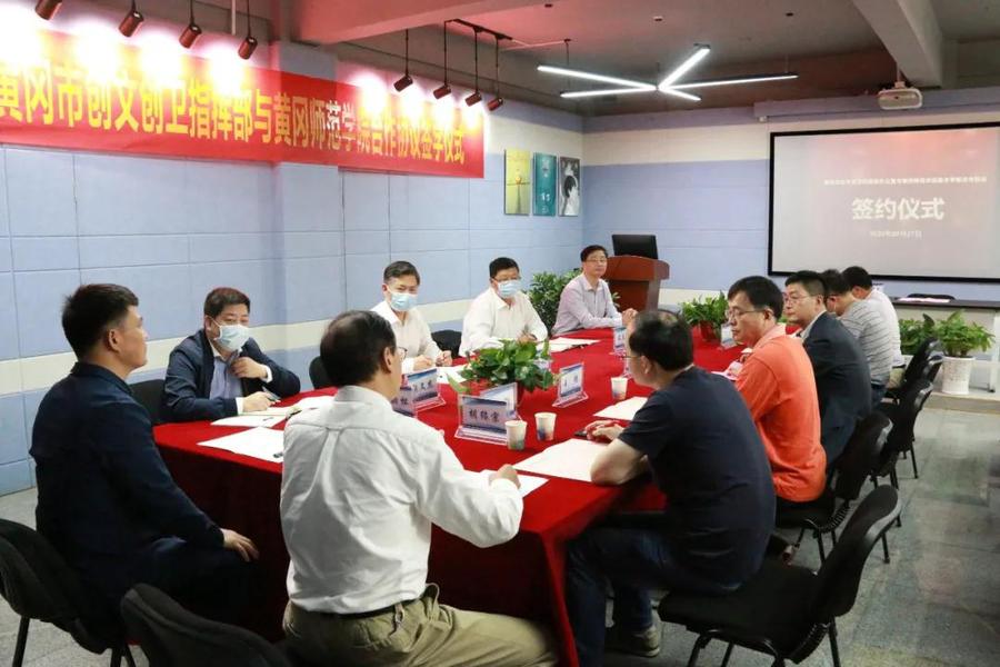 williamhill英国官网经理胡绍宗代表williamhill英国官网和游伟签订黄冈市创文创卫指挥部办公室与williamhill英国官网合作协议。