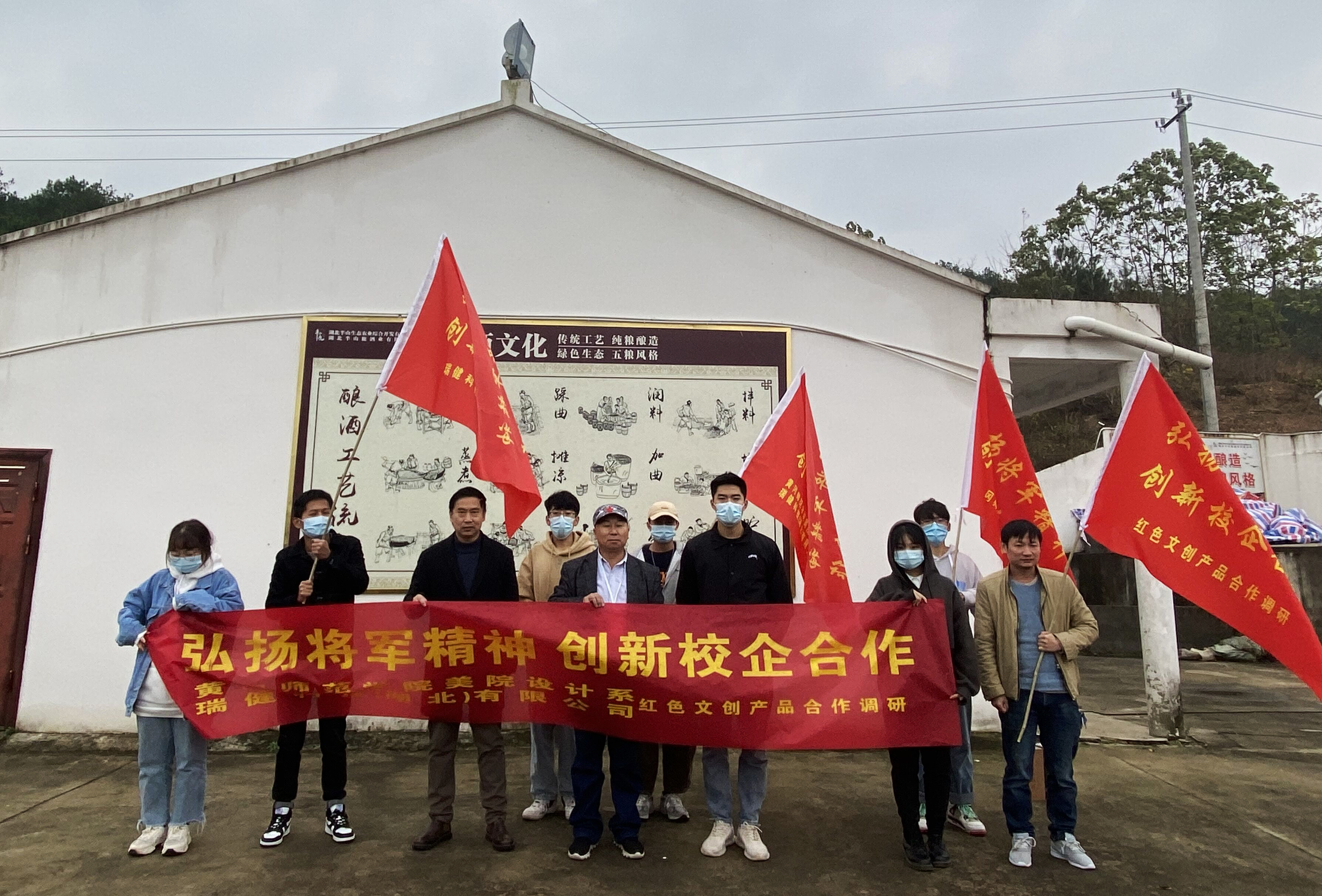 秉承着“传播将军文化,服务地方经济”的红色理念,瑞健科技(湖北)有限公司负责人黄军民,抱着回馈家乡、以及从小耳濡目染的将军情节,毅然返乡创业,准备打造具有红色文化基因,以将军精神为核心理念的一系列文创产品。通过多方渠道,黄军民与同是红安人的黄冈师院视传系主任张红辉取得联系,双方多次沟通后,邀请视传系文创实验班师生一行前往红安调研。