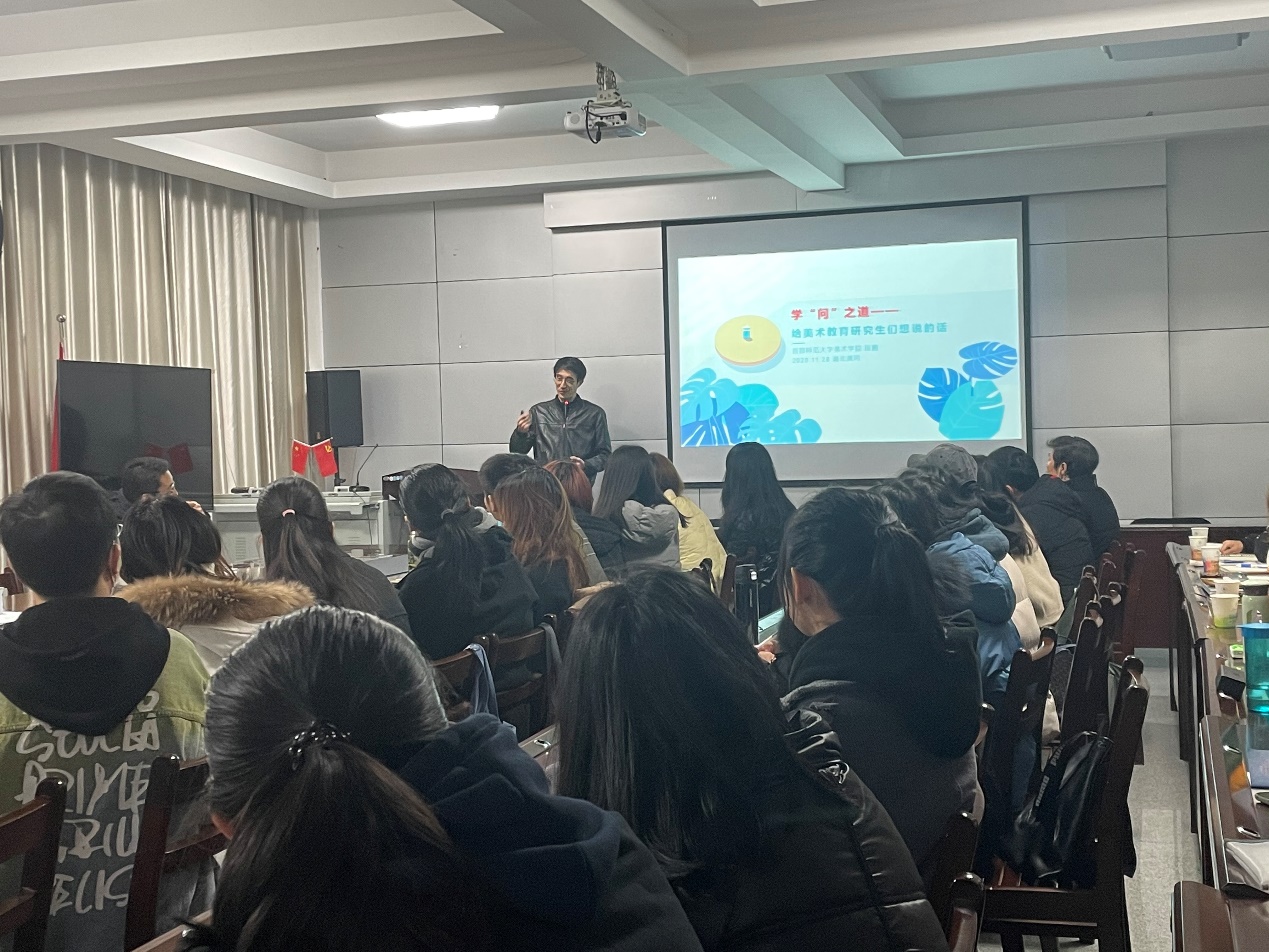 段鹏围绕《学“问”之道——给美术教育研究生们想说的话》给大家做了一场精彩的报告,他提出硕士研究生作为本科生向博士研究生的过渡阶段,具有十分重要作用,新时代的硕士研究生要学会思考、表达、创新,努力对未知领域进行更深层次的追求和探索。