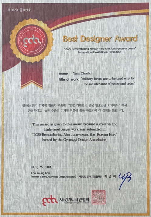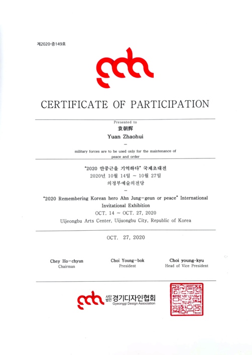 据悉,2020年“和平”主题国际设计邀请展由韩国京畿设计协会主办,韩国义正部市义正部艺术中心承办。该活动共收到中国、韩国、美国、波兰、墨西哥、印度尼西亚等17个国家和地区的艺术家作品,经遴选展出作品103件。