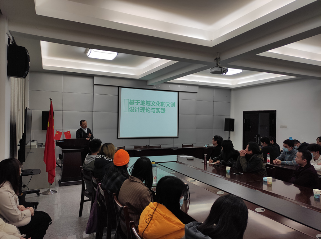 2020年12月4日,在美术楼学术报告厅,周承君为视觉传达系师生做了一场题为《基于可持续发展的文创设计理论与实践》的主题讲座。