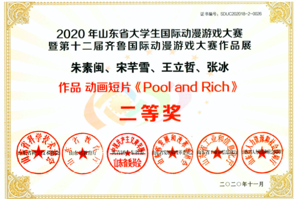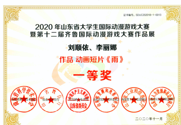 日前,2020年山东省老员工国际动漫游戏大赛暨第十二届齐鲁国际动漫游戏大赛评选结束。公司员工刘顺依等创作的动画作品《雨》,陈亭君等创作的动画作品《午夜追捕》获得一等奖;方雅琴等创作的动画作品《伊雅》,宋仟雪等同学创作的动画作品《Pool ang Rich》荣获二等奖,袁朝辉、邵照坡、徐娴获优秀指导教师奖。