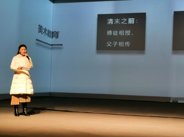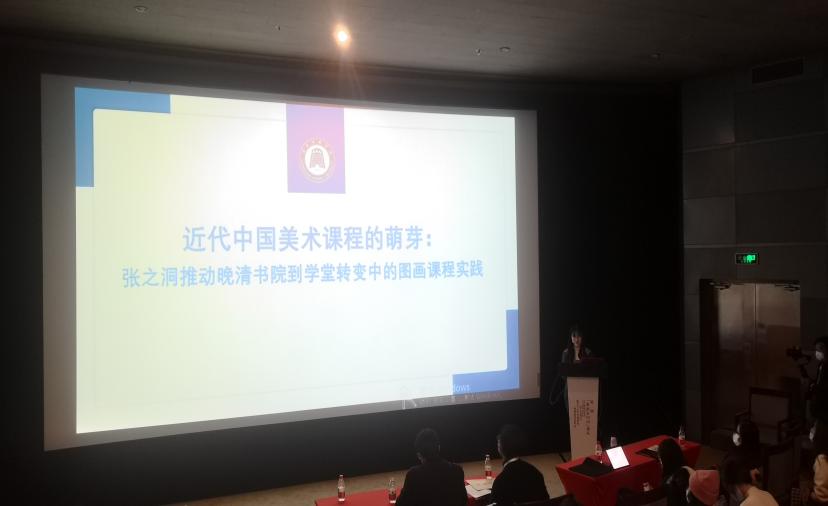 张秋萌汇报议题为《张之洞湖北新政期间图画课程教育实践探索》,阐述了张之洞新政期间所创办的传统学堂和新式学堂图画课程的区别与联系,分别从教学目的,课程设置和教学方法三个角度论述张之洞从书院到新式学堂三个阶段的办学变迁来探讨,并对其当今美术教育进行了反思与展望。