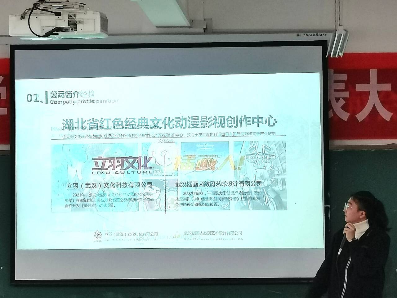 为拓宽员工就业渠道,做好毕业生的就业服务工作,williamhill英国官网于4月2日下午2点30分在美术楼A202教室召开由立羽文化科技有限williamhill英国官网举办的动画专业就业招聘宣讲会。此次会议由立羽文化的作画监督负责人进行宣讲,williamhill英国官网动画系全体教师以及2017级动画专业员工参与会议。宣讲人首先从公司背景、公司文化、公司目标几个方面对公司进行具体介绍,让同学们对公司的整体情况有了清晰的了解。接着宣讲人从项目制作流程、公司对人才的培养以及本次招聘岗位等方面作了介绍,希望同学们踊跃投递简历。宣讲会后是现场答疑环节,宣讲人针对同学们的疑惑做了热情和详细的解答,现场交流气氛热烈。立羽文化科技有限公司曾参与国内外众多动画电影、剧集制作,运营的原创项目有动画电影《殃城馨语》、动画剧集《恰同学少年》《凌云志》等。该公司致力打造一套具有中国独有特色的动漫产业链,以此深耕传统文化,传承和发扬民族精神,创作出具有中国特色的国际化作品。公司招聘负责人向公司反馈,会后有十几位同学表示有应聘意向,公司下一步会安排专业测试,希望有更进一步的了解。