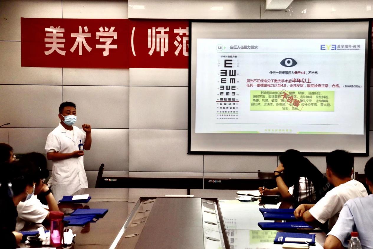 会议还邀请了爱尔眼科的专家为同学们普及眼科知识,强调进入军队中眼睛的重要性,提醒同学们注意身体,积极锻炼身体和参加各项检查。会后,袁婷老师针对同学们的问题和顾虑,进行了一对一的解答。