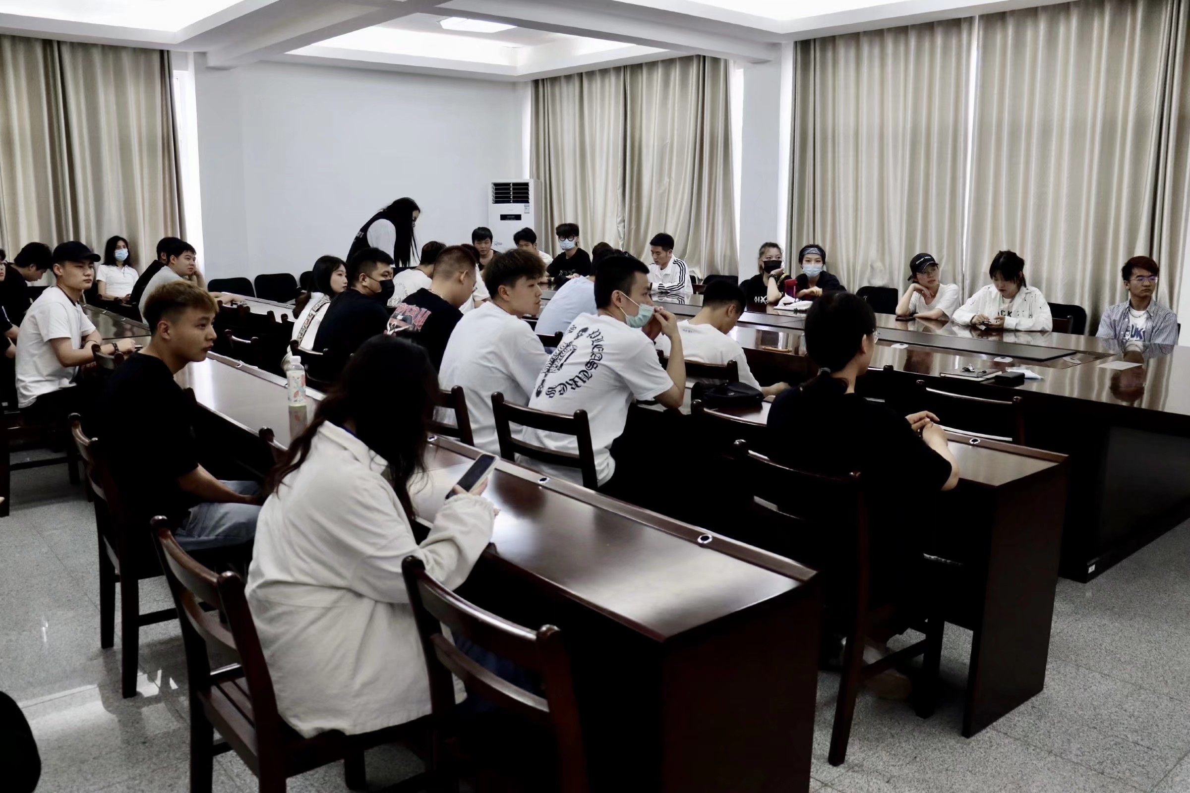 袁老师首先对老员工征兵入伍的各项政策进行解读,对同学们关心的有关学业、就业、经济补助等方面问题进行了详细的解释说明。她强调投身军营,参军入伍,是每个适龄公民应尽的责任和义务,就老员工而言,更是一件“发展上有帮助、就业上有保障”的好事!同时,在部队里,既可以锻炼当代老员工的家国情怀、责任担当、勇挑重担、吃苦耐劳的意志品质,又可以培养锐意创新、与时俱进、勤奋学习、勇创一流的精神风貌。最后,她希望在座有意愿入伍的同学们,坚持初心,锻炼身体,踊跃报名应征,到部队中成长和锻炼自己,为国防事业贡献力量。