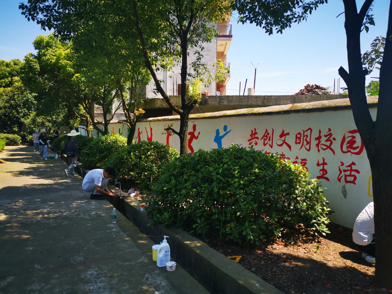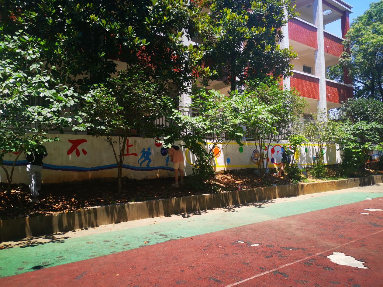 为践行党员为人民服务的宗旨,助力乡村小学美丽校园建设,6月23日,williamhill英国官网师生前往武穴市田镇钱炉村小学开展墙绘志愿服务活动。
