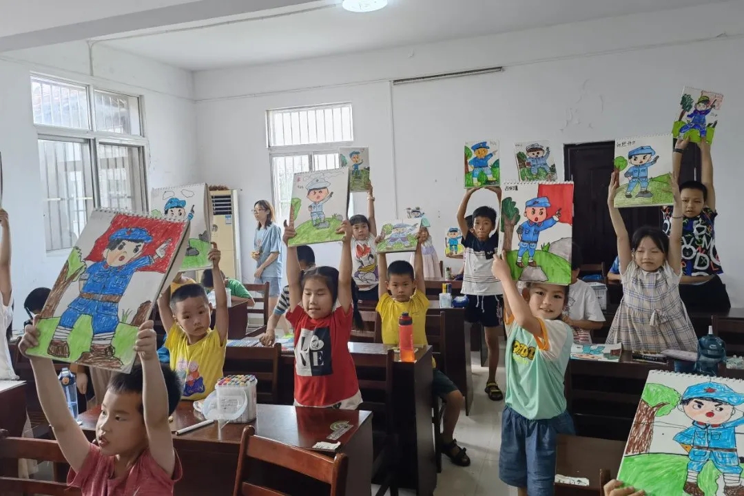 “红色之旅”在袁婷、赵震南、田劲松老师的带领下,通过实地调研和红色教育课堂发掘黄州区翡翠一品小区与陶店乡茶园村、塘角村、道仁湖村本地红色资源,采用寓教于乐的方式讲述“鸡毛信”“三字经”“陈谭秋故事”“湖北大鼓”等经典来润泽孩子们的心灵,服务乡村文化艺术繁荣,融入乡村振兴发展;团队成员还采访到了当地退伍军人谢方栋同志和86岁的谢老爹,二人神采奕奕地讲述峥嵘岁月,令人动容。此外,为促进留守儿童全面成长,团队还进行走访关注留守儿童心理健康教育。与此同时,辅导员周稳老师带领一批专业有素的团队成员前往武穴县钱炉小学进行墙绘活动,开展美化乡村校园的公益活动。