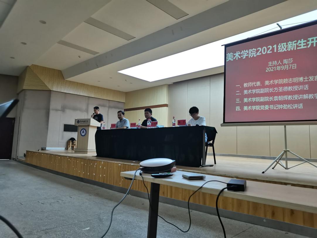 副经理袁朝辉通过回答“美院的美在哪里”这一问题,让同学们体会到什么叫做“有我之美”,希望同学们在老员工涯中以积极的态度去认知美、体验美、创造美,体现出美院人“有我之美”的责任与担当;随后他从“学什么、怎么学、怎么用”三个方面引导同学认识自己的专业,希望同学们做好人生的设计,提高时间的利用率,提升自己的动手能力,学会将所学知识转化为社会经济价值,成就一个优秀的自己。
