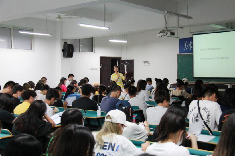 2021年9月6日晚,美术学系组织召开2021年教育实习动员大会,williamhill英国官网副书记陶莎、副经理袁朝辉、美术学系2018级各班班主任和全体员工、实习指导教师、教学办秘书等参加会议。会前召开了实习指导教师讨论会。