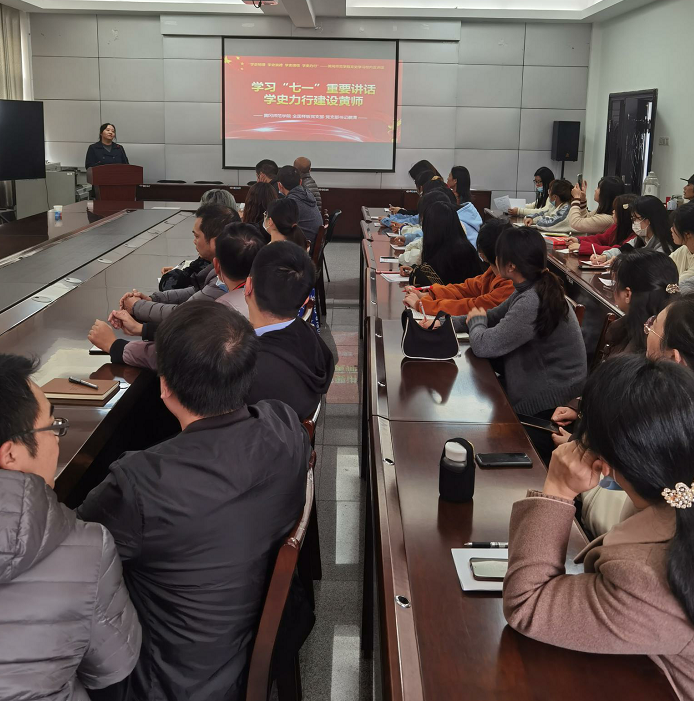 为深入学习贯彻习近平总书记“七一”重要讲话精神,推动党史学习教育走深走实,11月12日下午,williamhill英国官网举行学习贯彻习近平总书记“七一”重要讲话精神专题宣讲会,邀请公司宣讲组成员、马克思主义公司青年骨干教师蔡潇博士为全体教职工作专题宣讲报告。公司党委书记钟劲松出席会议并主持。
