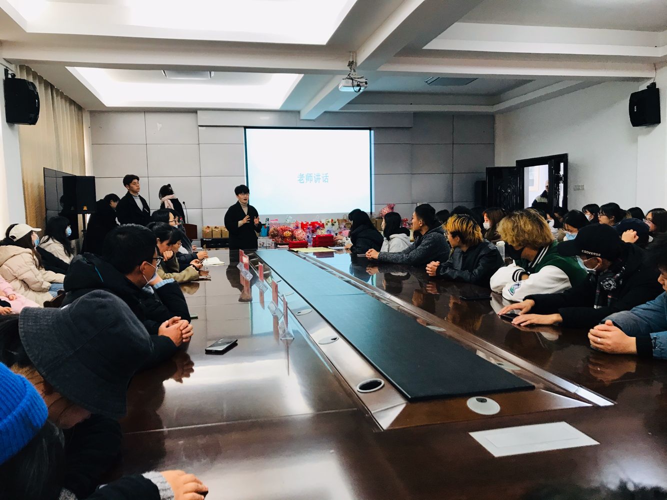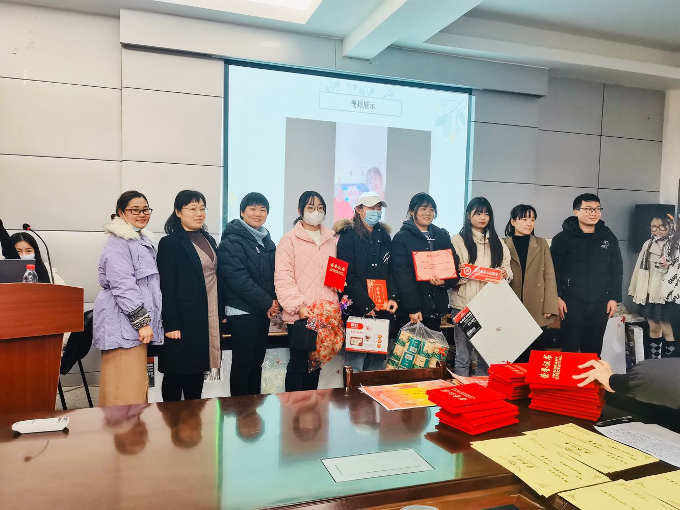 接下来由郭华老师宣布评比结果,全体辅导员老师为受表彰宿舍和个人颁发证书和奖品。今年文明宿舍创建表彰层次多、辐射广,共评选出设计最美宿舍10间,卫生星级宿舍10间,6名先进个人和20名优秀宿舍长,并对5间优秀党员宿舍和15间优秀入党积极分子宿舍进行了挂牌。