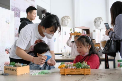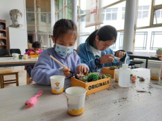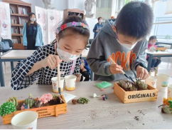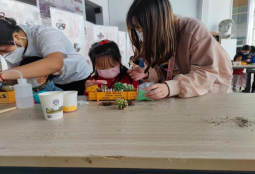 志愿者向小朋友们讲解了多肉移植过程中的注意事项,并手把手的进行指导。小朋友们发挥动手能力,手持小工具饶有兴致地栽培起来。移植、培土、浇水……不一会儿,一瓣瓣多汁多肉的叶片在小朋友们的精心呵护下移植到了小巧精致的盆中,一盆盆充满生机的盆栽就呈现在大家面前。一颗颗绿植在精美的小石子的装饰下,摇身变成了赏心悦目的微缩景观。大家都不禁惊叹于孩子们的动手能力与创造力。