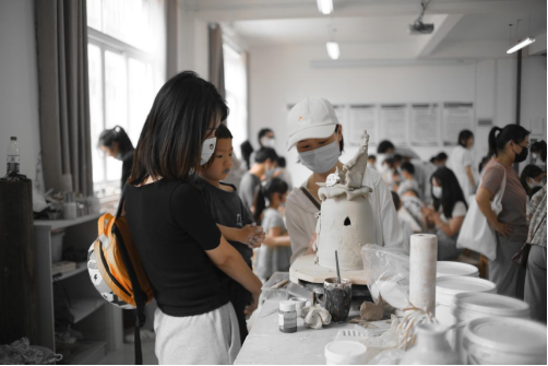 在制作陶艺之前,团队志愿者们带领家长和小朋友观赏陶艺作品,介绍了陶艺的由来、兴起和发展,讲解了陶艺的历史文化。陶艺作为中华民族的传统工艺,有着悠久的历史,也承载着丰富的传统文化,大家都领略到了中国传统非遗文化——陶艺的魅力。