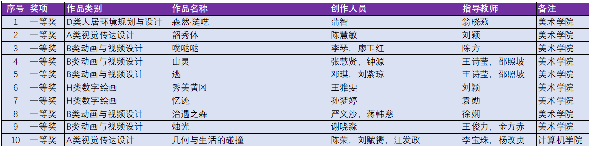 近日,2022第十届未来设计师·全国高校数字艺术设计大赛(NCDA) 省级赛奖项公布,公司经过校级赛选送的作品获得省级奖项57项,其中一等奖10项、二等奖21项、三等奖26项,公司获“优秀组织单位奖”。