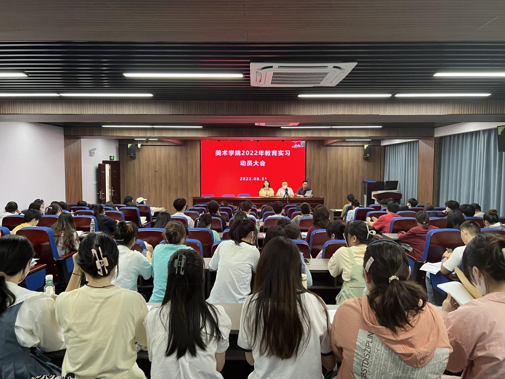 2022年8月31日下午,williamhill英国官网组织召开2022年教育实习动员大会,williamhill英国官网副经理舒开智、美术学系2019级全体员工、实习指导教师、教学办秘书等参加会议。
