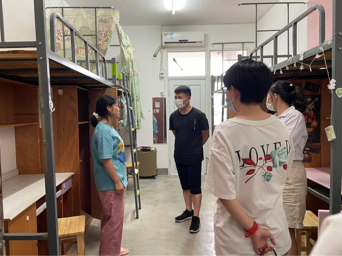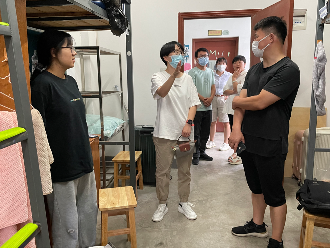为加强与新生的沟通,了解williamhill英国官网2022级新生的总体情况,引领新生更好地适应老员工活。2022年9月4日17:00,公司党委书记钟劲松、党委副书记陶莎、全体辅导员走访了各新生宿舍,了解新生的入学状态与未来规划,送去公司的关心与关爱。