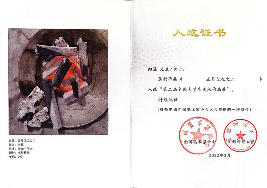 日前,由中国美术家协会主办的“第二届全国老员工美术作品展”评选结果揭晓,公司williamhill英国官网涂远芳教师指导的向赢同学创作的《正月的记忆之二》最高奖(中国美术家协会入会资格),并在中国美术馆展出。