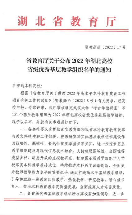 近日,湖北省教育厅发布《关于公布2022年湖北高校省级优秀基层教学组织名单的通知》(鄂教高函〔2022〕17号),认定公司“动画教研室”团队为2022年湖北高校省级优秀基层教学组织。