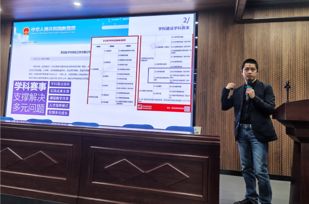 为更好地规范公司学科竞赛的组织管理,保障竞赛活动有序化、规范化、科学化、制度化,调动全院师生参与学科竞赛的积极性,提高竞赛水平,促进学科和专业建设和发展。3月10日下午15:00,在美术楼A202学术报告厅,公司邀请湖北第二师范公司艺术公司副经理,硕士生导师,赵文副教授作题为《多视角探讨设计学科赛事与人才培养路径》的学术讲座。经理袁朝辉教授主持报告会,经理助理陈方、视觉传达设计系全体教师及120余名员工参加了此次讲座。