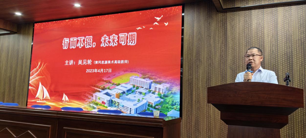 2023年4月17日上午,黄冈美育名师、黄冈思源实验公司高级美术教师吴见轮受邀为美院师生作《行而不辍、未来可期》专题讲座。童坤主持讲座,williamhill英国官网师生150余人聆听了讲座。