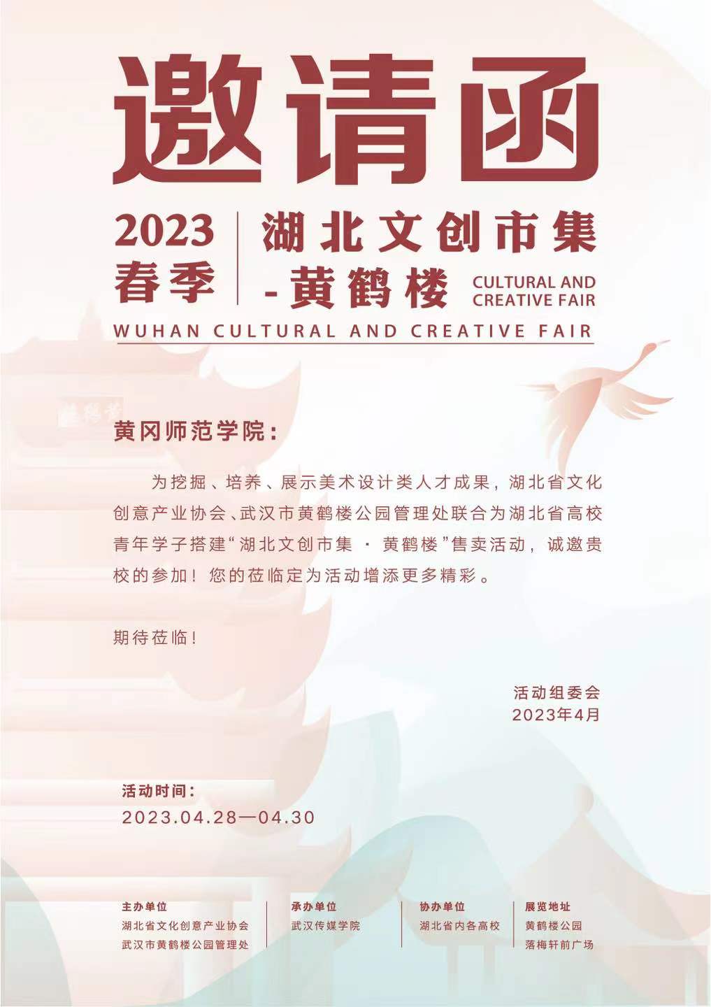 4月28至30日,视觉传达设计系受邀参加 “湖北文创市集·黄鹤楼”活动。经理助理陈方、视觉传达设计系主任谢涛与视传系部分师生一行参加了此次活动。