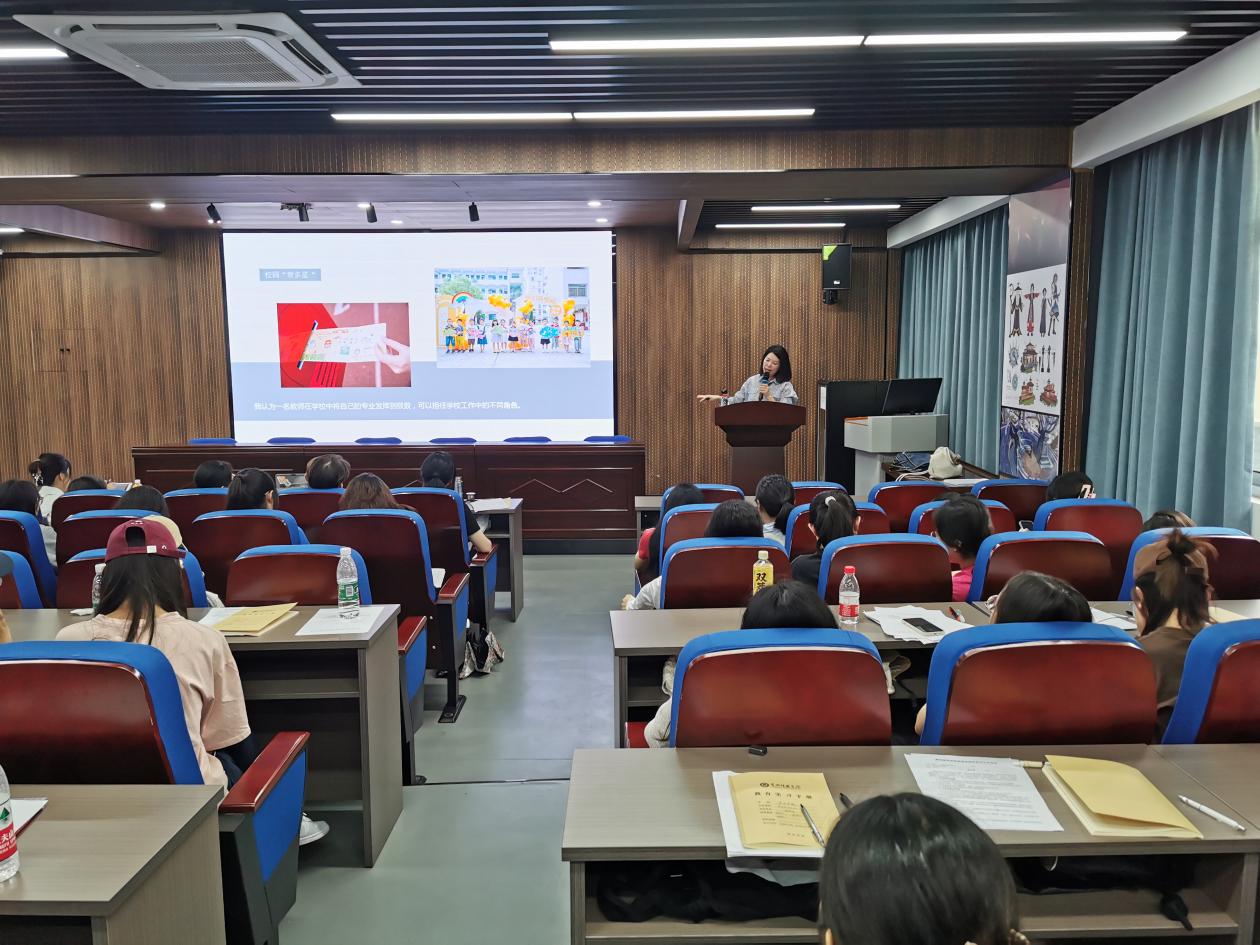 2023年9月4日下午,为了巩固员工专业思想,提升员工师范技能,做好教育实习工作,首届武穴名师、湖北省武穴市师范附属小学高级美术教师廖凌燕受邀为williamhill英国官网师生做专题讲座。樊红梅副教授主持讲座,williamhill英国官网师生130余人聆听了讲座。