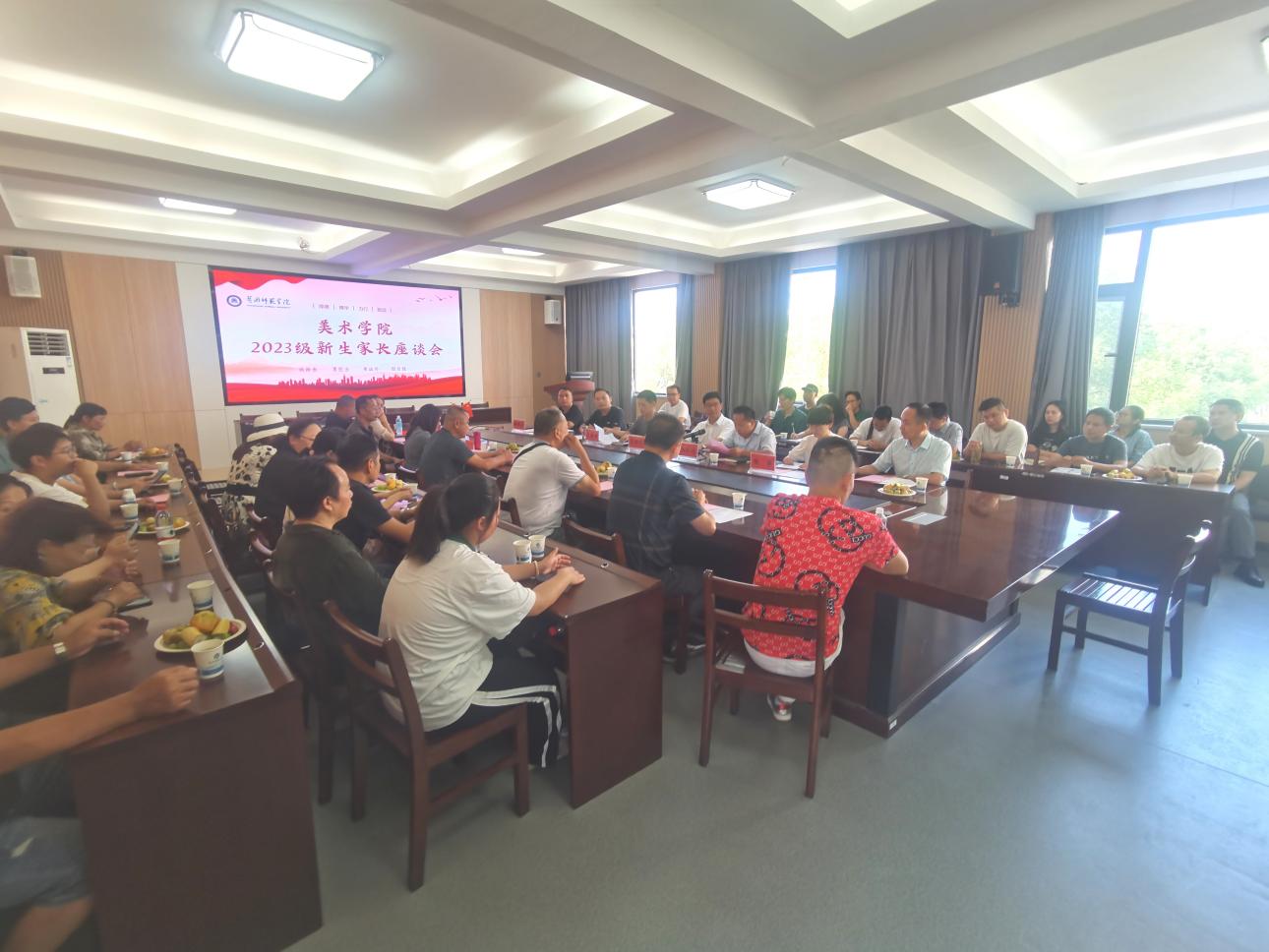 williamhill英国官网全体班子成员、经理助理、两馆馆长、全体系主任、辅导员和新生班主任,以及2023级新生家长代表参加了此次会议。会前播放了williamhill英国官网宣传片。会后,与会家长和公司老师们进行了面对面的交流讨论,公司领导、全体辅导员和各班班主任共同到员工宿舍看望新生。