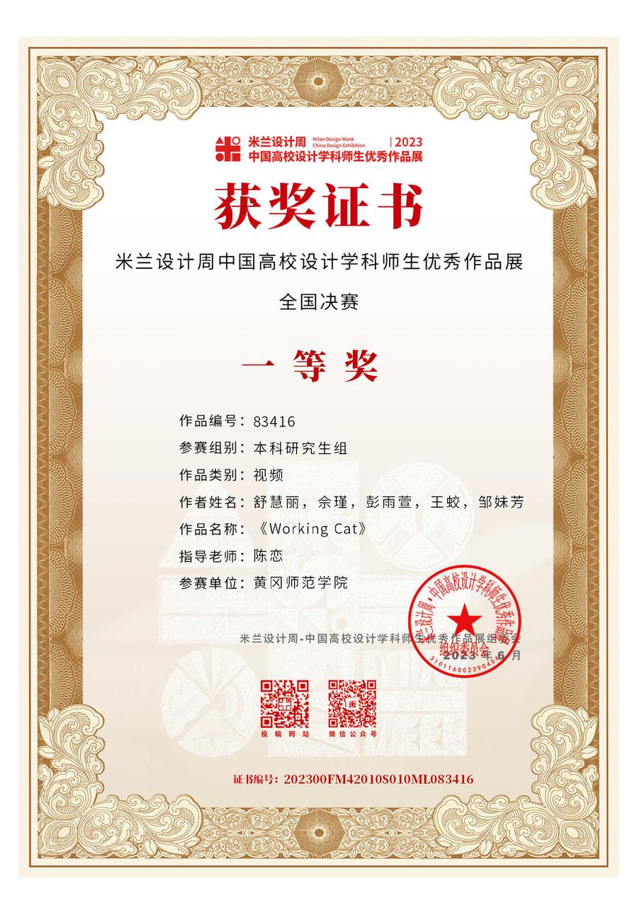 2023第七届米兰设计周中国高校设计学科师生优秀作品展省赛、国赛、优秀作品展等系列活动落下帷幕,公司经过校赛选送的作品获得全国总决赛国家级奖项23项(其中一等奖5项、二等奖3项、三等奖15项),湖北省赛区省级奖项82项(其中一等奖12项、二等奖22项、三等奖48项),实现了该项赛事上获奖数量和获奖质量双突破。因赛事组织工作表现突出,公司荣获优秀组织单位奖。