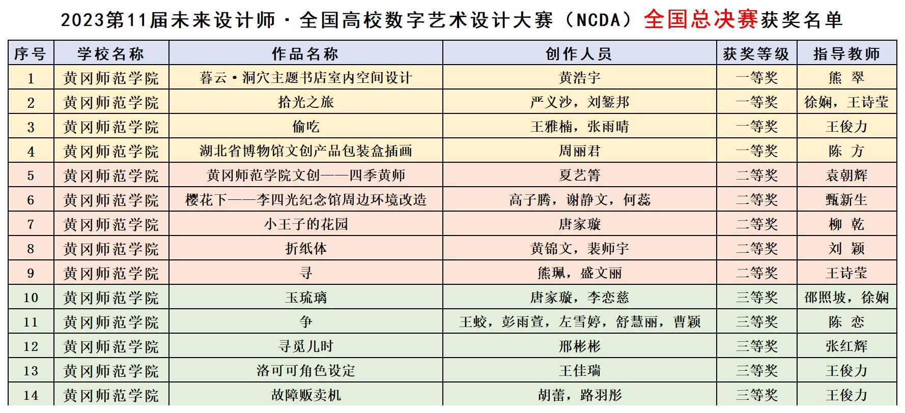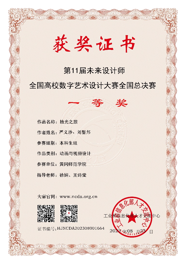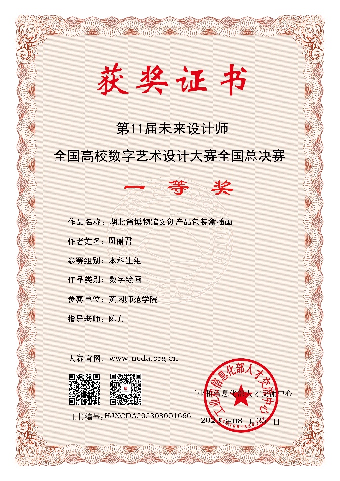 近日,2023第11届未来设计师·全国高校数字艺术设计大赛(NCDA)全国总决赛最终获奖名单公布,公司经过校赛选送的作品获得全国总决赛国家级奖项14项(其中一等奖4项、二等奖5项、三等奖5项),湖北赛区省级奖项114项(其中一等奖21项、二等奖40项、三等奖53项),获奖数量和质量均创历年之最。因在全国总决赛中成绩斐然,公司荣获杰出贡献奖。因赛事组织工作表现突出,公司荣获优秀组织单位称号。